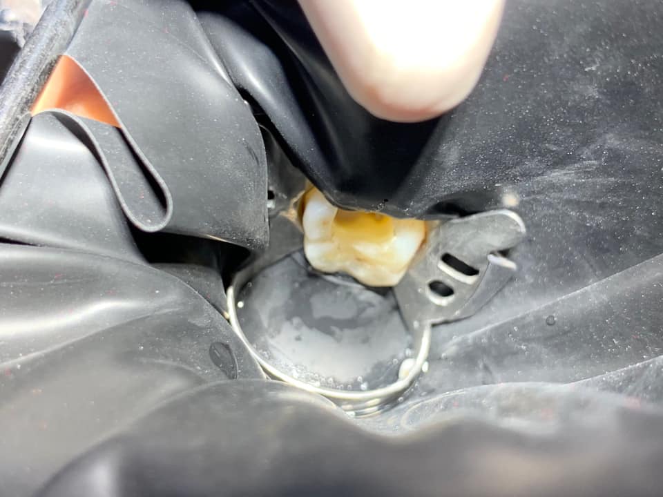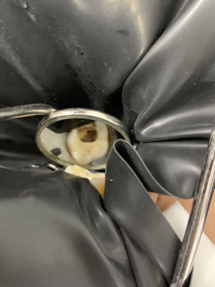 Với đế cao su, không chỉ là vấn đề cách ly mà còn là vấn đề an toàn trong điều trị tuỷ răng – Nội nha. Bệnh nhân hoàn toàn yên tâm không sợ tình trạng rơi dụng cụ vào đường thở hay đường tiêu hóa và không phải khó chịu với mùi thuốc sử dụng bơm rửa ống tủy.