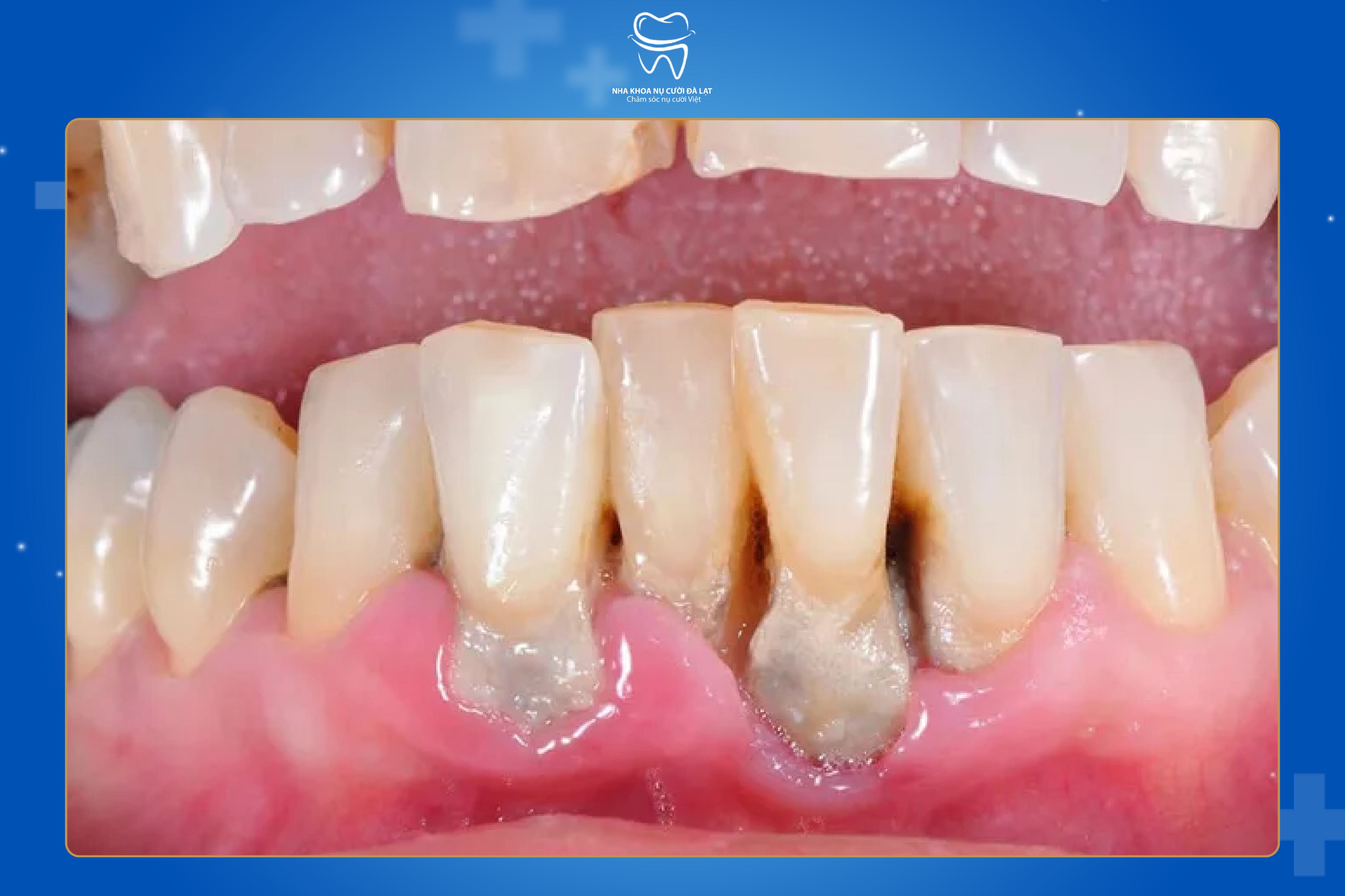Giai đoạn phá hủy cấu trúc nâng đỡ: Xương ổ răng bị phá hủy, lợi tụt, và răng có thể bị lung lay, thậm chí mất răng.