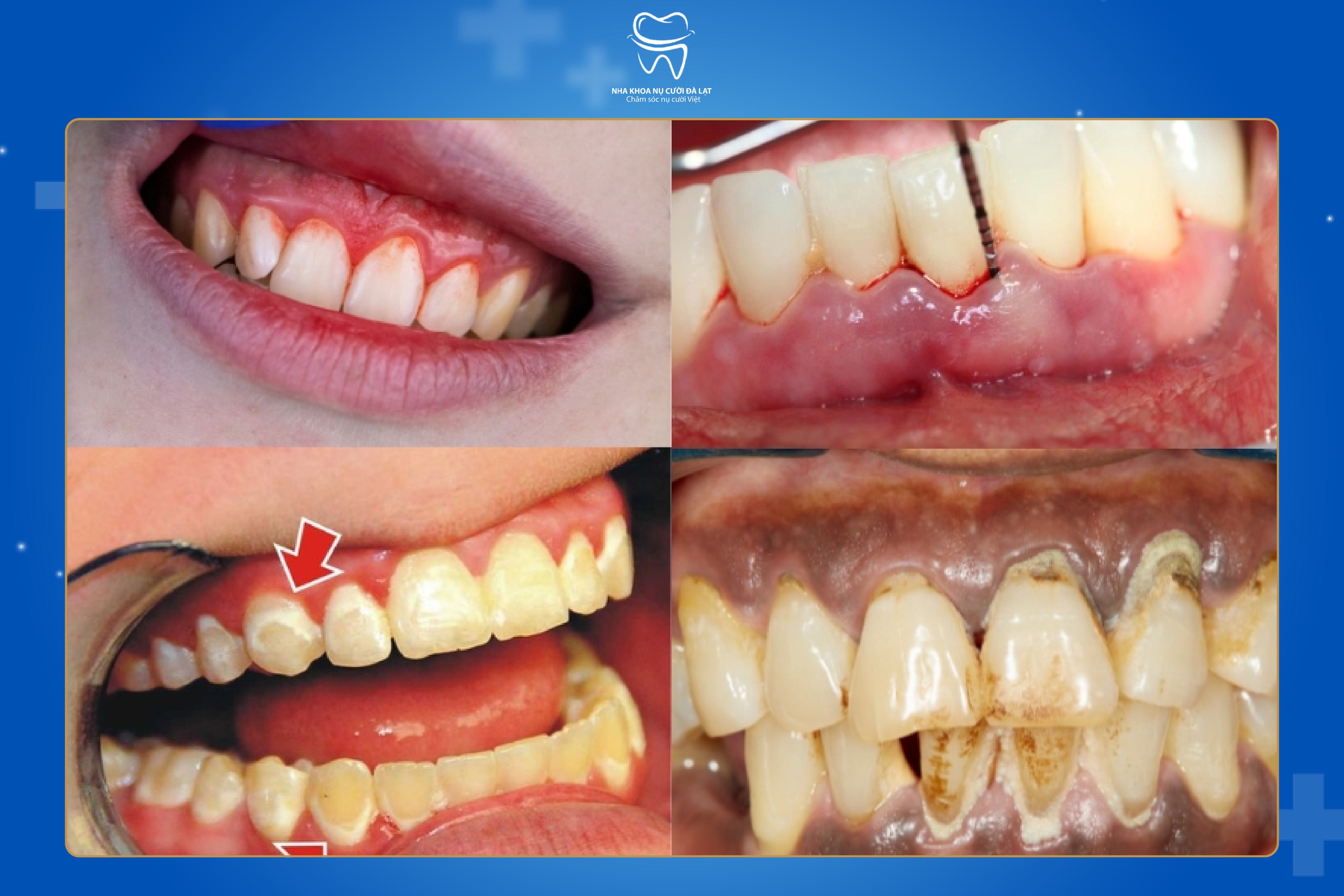 Chảy máu lợi: thường xảy ra khi đánh răng, dùng chỉ nha khoa hoặc khi nhai thức ăn.